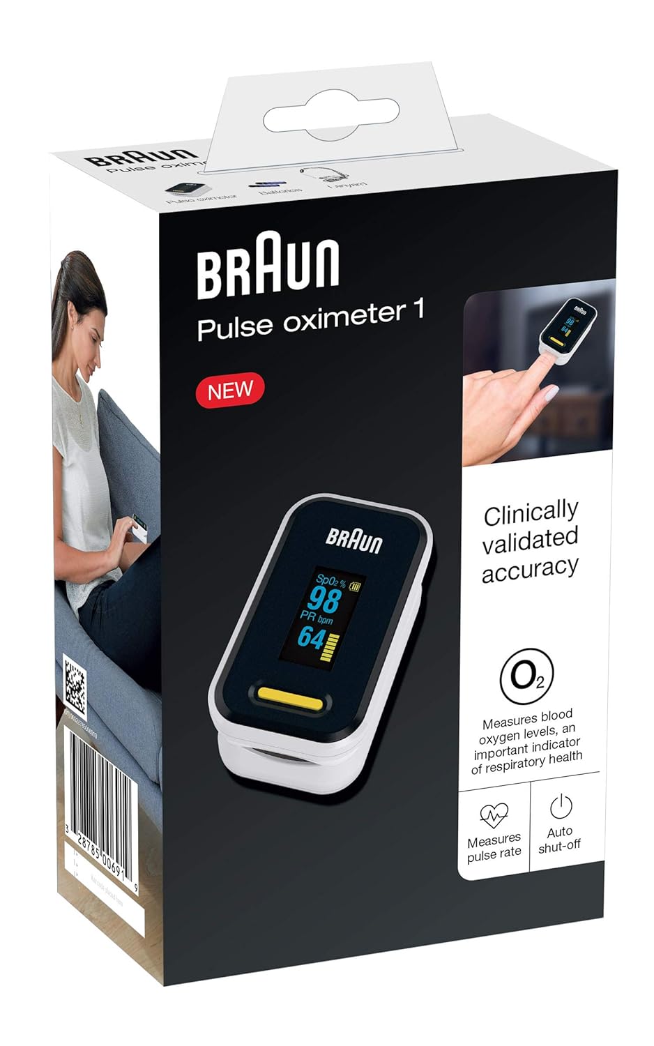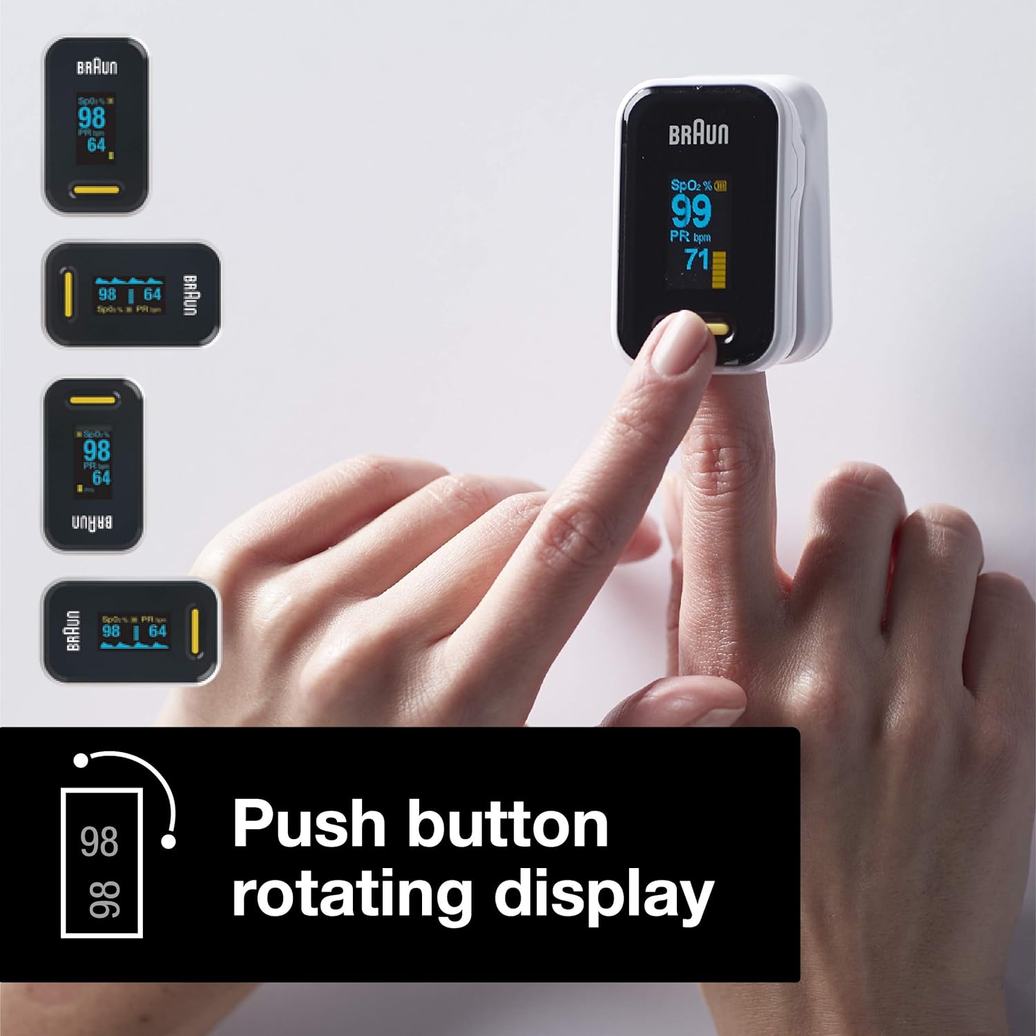 MEASURE BLOOD OXYGEN LEVELS – Use the Braun Finger Pulse Oximeter to measure your blood oxygen levels, which are an important indicator of respiratory health.
