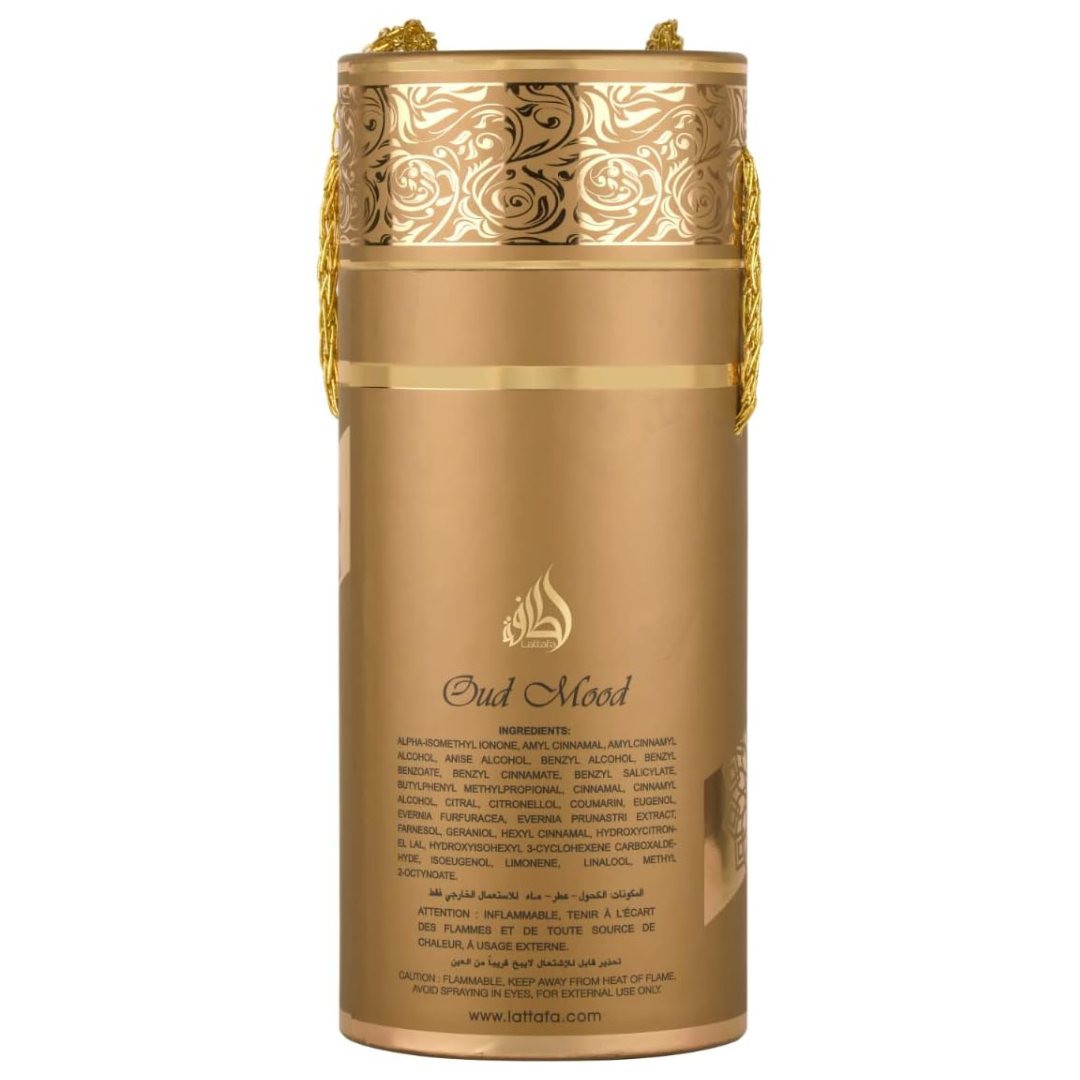 Product Features: and: Lattafa Targeted Group: Unisex Fragrance Type: Eau de Parfum Size: 100 ml Fragrance Family: Woody & Musky Top Notes: Tropical Citrus Perfume Name: Oud Mood Middle Notes: Fruity Vanilla Base Notes: Sweet