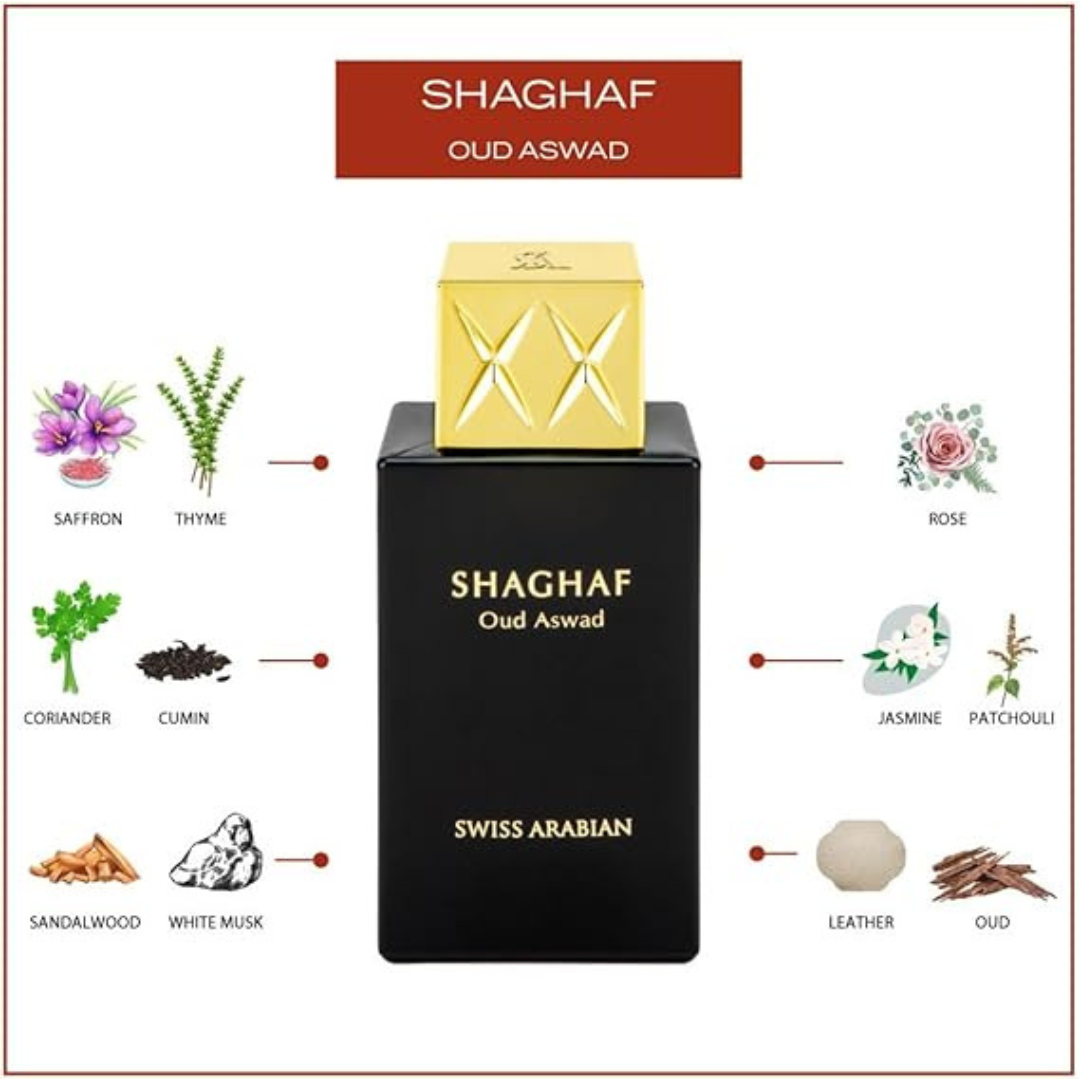 It’s as complex as it is beautiful, just like the feelings of passion which inspired its creation. Shaghaf Oud Aswad is an oriental, woody, oud fragrance that opens with an accord of floral, woody notes, and a touch of prized saffron. The anticipation builds with a gradual blossoming of its complex heart. Combining the heady petals of rose and jasmine with earthy patchouli and spices, each scented footstep leads to the golden prize. The unique fragrance of agarwood starts to emerge through flowers, spices and woods, building towards a sensual and warm finish. The agarwood invites warm, leathery notes and cozy amber. The oud encompasses all; wrapping you in its cloak of pure gold. Shaghaf Oud Aswad is a unisex scent ideal for cooler seasons. This is the moment. This is the passion. This is the scent.